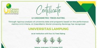 Unila Peringkat 12 Kampus Berkelanjutan Terbaik di Indonesia Versi UI Greenmetric...