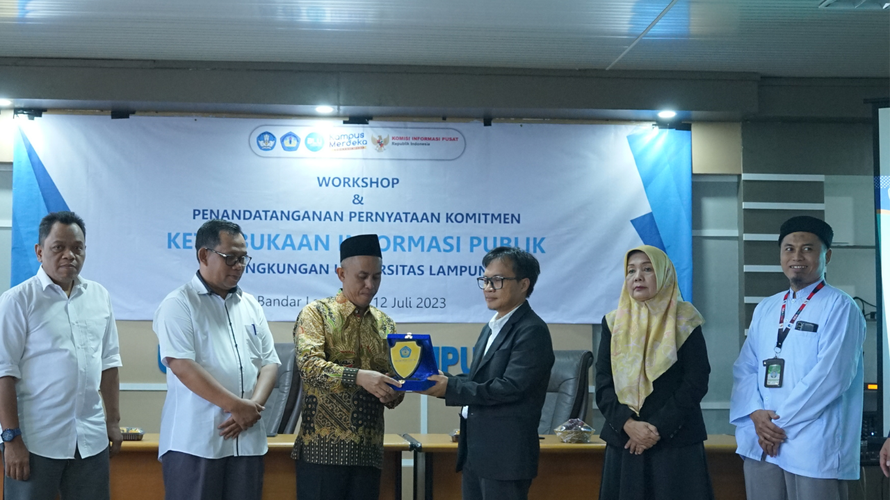 (Unila): PPID Universitas Lampung (Unila) menggelar workshop dan penandatanganan pernyataan komitmen keterbukaan informasi publik di lingkungan kampus pada Rabu, 12 Juli 2023.