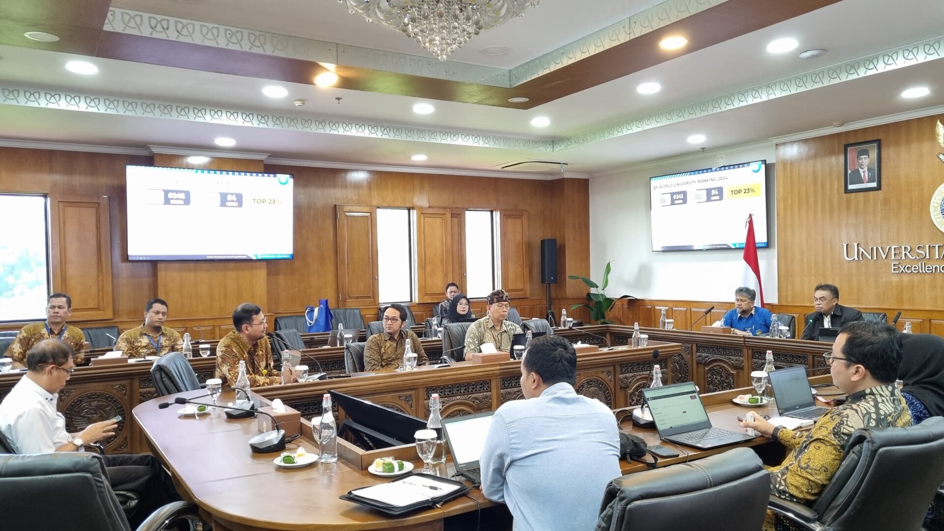 Kunjungan dilangsungkan di ruang sidang pleno Balai RUA, lantai IV kantor manajemen Unair, dalam rangka benchmarking pemeringkatan THE dan penulisan sustainability report.