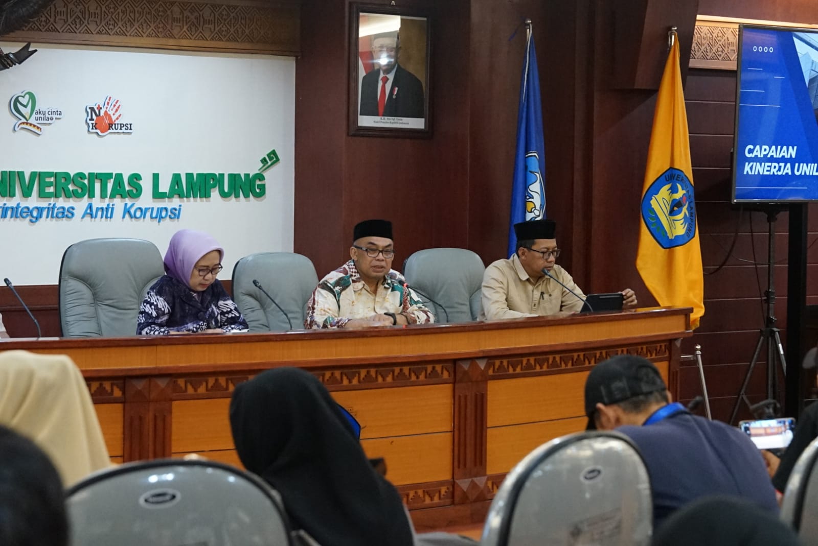 Selain paparan pembangunan Unila, kegiatan diisi penyampaian materi dari Dr. Ayi Ahadiat, selaku narasumber, yang memaparkan capaian kinerja Unila dan rencana pembangunan Unila pada tahun 2024.