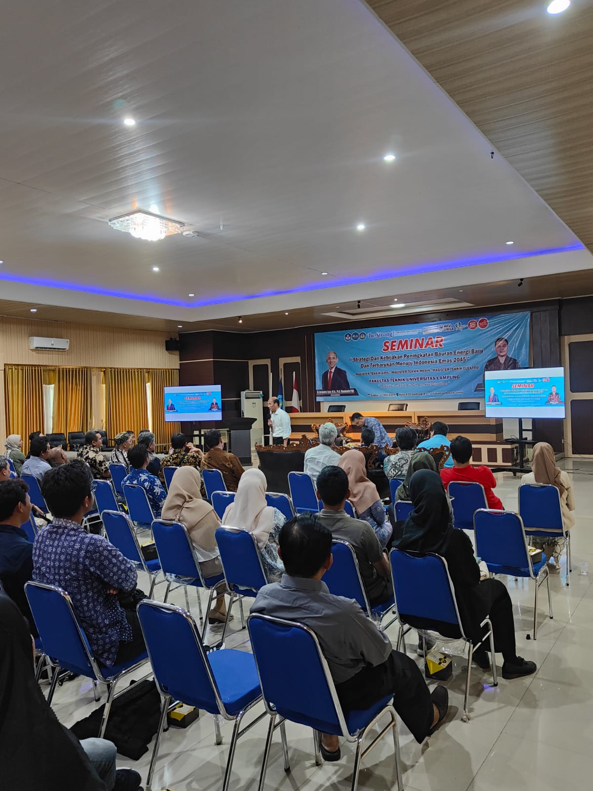 Dekan Fakultas Teknik Unila Dr. Eng. Ir. Helmy Fitriawan, S.T., M.Sc., mengapresiasi kesediaan Komisaris PLN Arcandra Tahar untuk menjadi narasumber seminar terkait EBT di Unila.