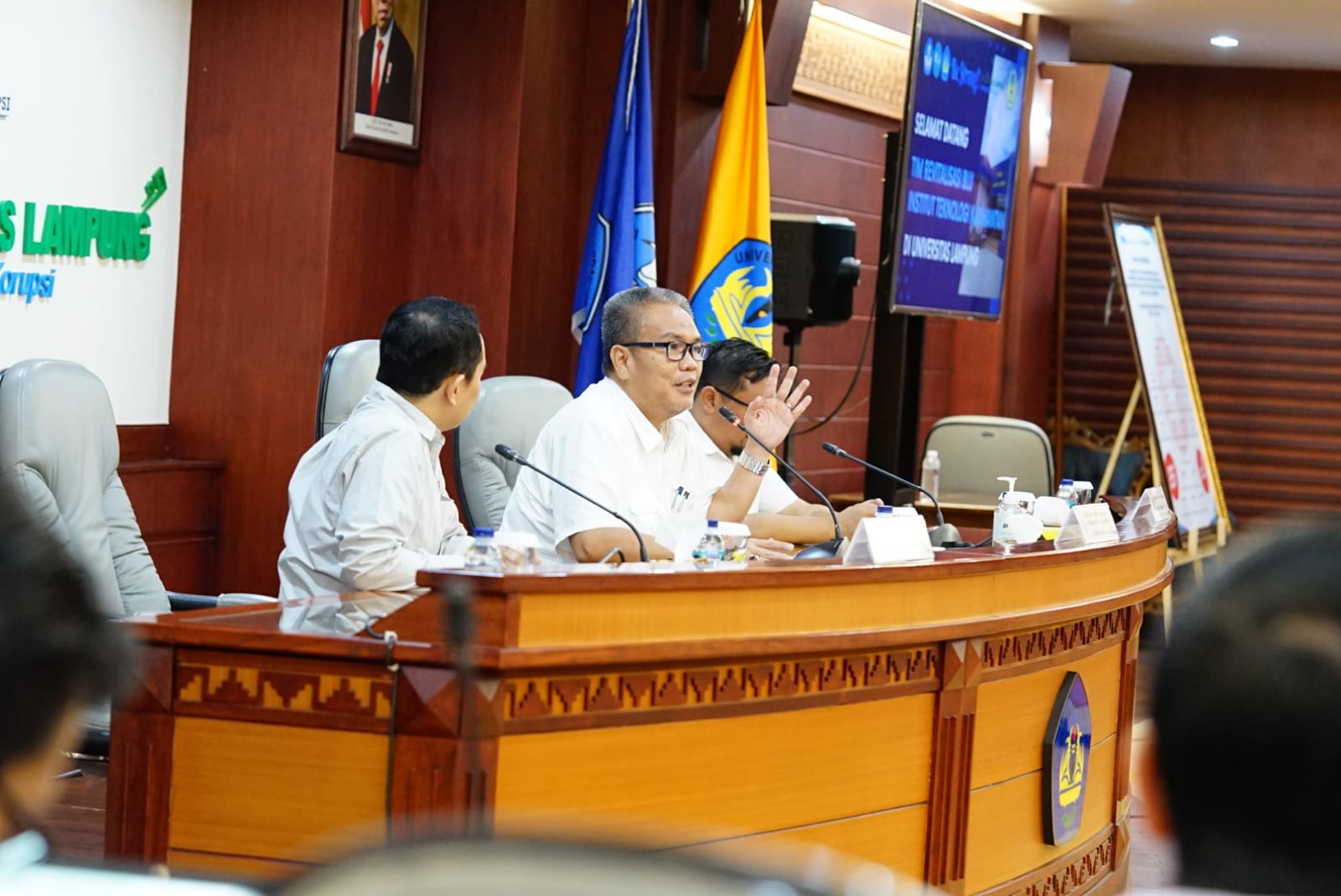 Ketua Tim Revitalisasi BLU ITK, Andi Idhil Ismail, S.T., M.Sc., Ph.D., mengucapkan terima kasih kepada Unila yang telah menyambut Tim BLU ITK dengan hangat untuk belajar dalam rangka transformasi ITK dari PTN Satker menjadi PTN BLU.