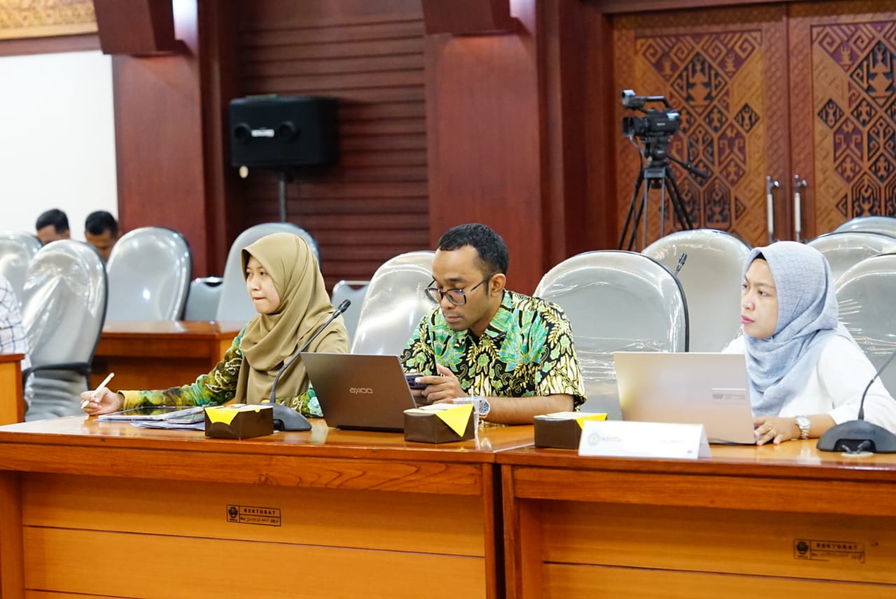 (Unila): Wakil Rektor Bidang Umum dan Keuangan Universitas Lampung (Unila) Dr. Habibullah Jimad, S.E., M.Si., beserta jajaran, menerima kunjungan rombongan Tim Badan Layanan Umum (BLU) Institut Teknologi Kalimantan (ITK) Kalimantan Timur, di ruang sidang utama rektorat, Rabu, 12 Juni 2024.
