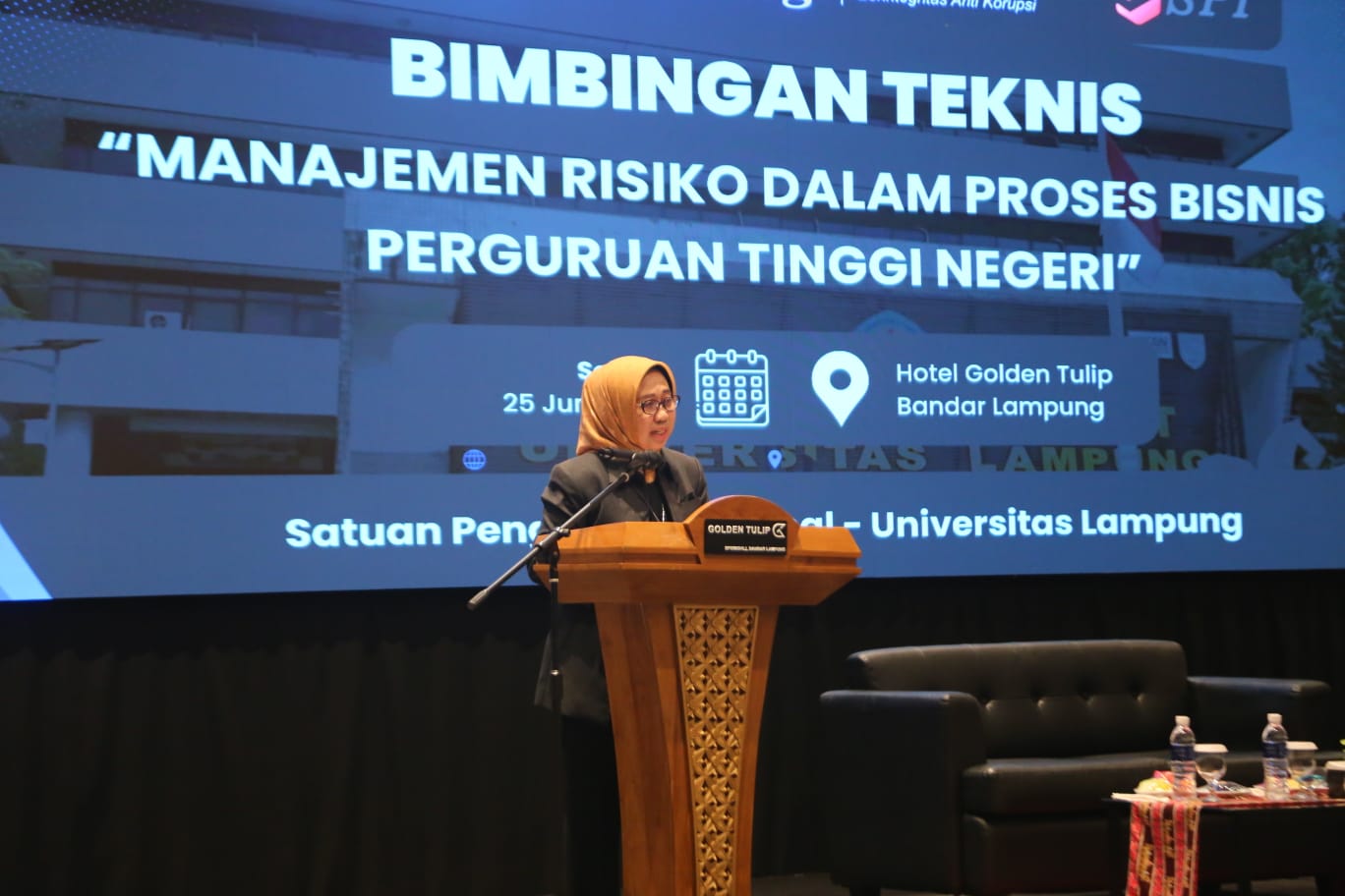 Kegiatan dibuka Rektor Unila Prof. Dr. Ir. Lusmeilia Afriani, D.E.A., IPM., ASEAN Eng. Ia mengapresiasi terselenggaranya kegiatan ini sebagai salah satu upaya peningkatkan kualitas tata kelola di lingkungan perguruan tinggi, khususnya dalam aspek kepemimpinan dan manajemen risiko.