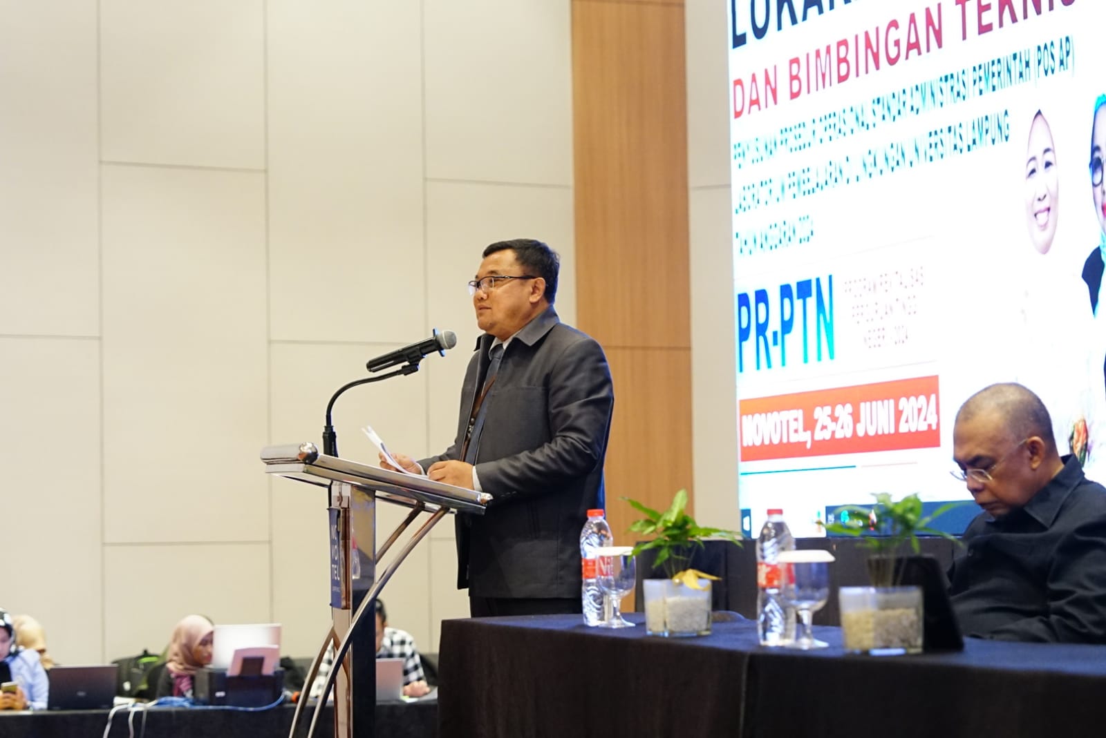 Dr. Eng. Suripto mewakili Rektor Unila dalam sambutannya menekankan pentingnya penyusunan POS AP yang baik dan benar.