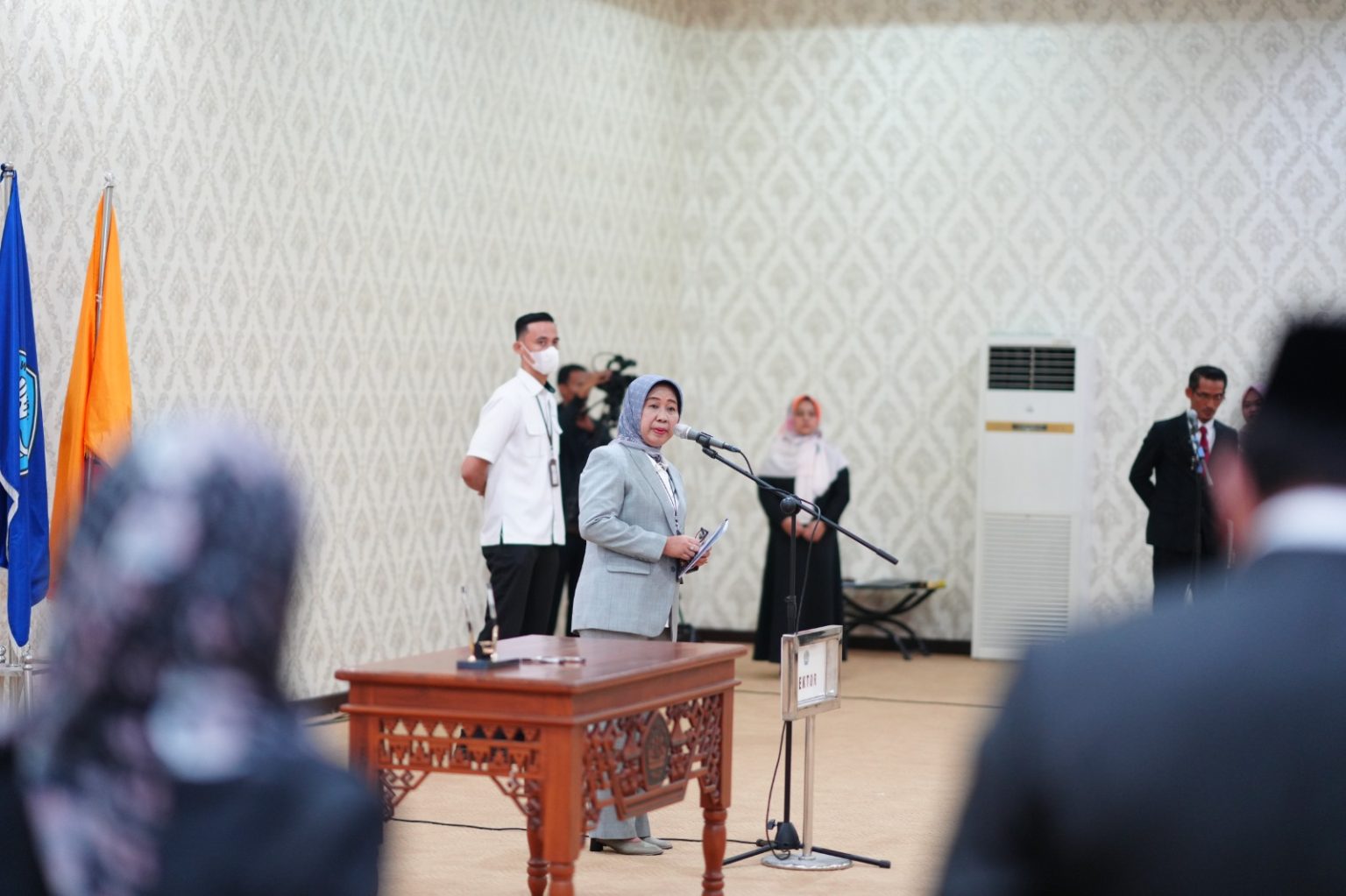 (Unila): Rektor Universitas Lampung (Unila) Prof. Dr. Ir. Lusmeilia Afriani, D.E.A., IPM., ASEAN Eng., melantik pejabat tahap tiga di lingkungan Unila pada Rabu, 12 Februari 2025, di ruang sidang lantai empat rektorat.