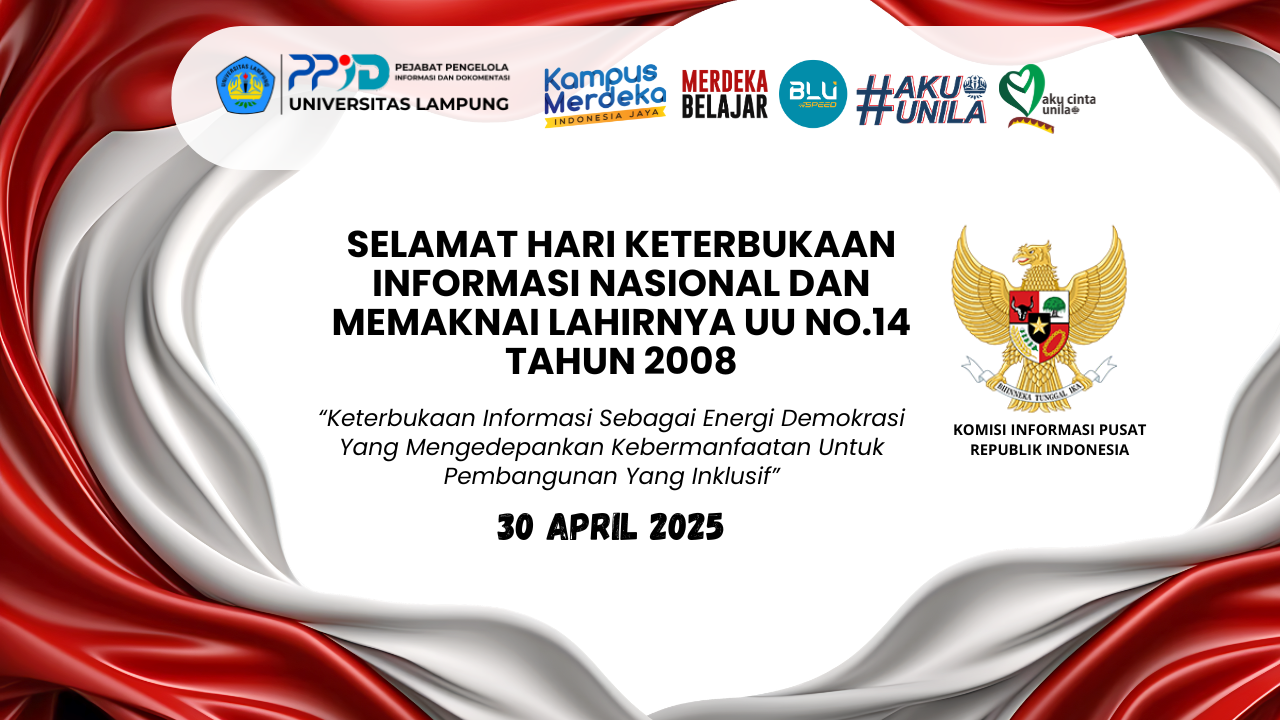 Beranda Berita SELAMAT HARI KETERBUKAAN INFORMASI NASIONAL DAN MEMAKNAI LAHIRNYA UU NO.14 TAHUN 2008 Berita SELAMAT HARI KETERBUKAAN INFORMASI NASIONAL DAN MEMAKNAI LAHIRNYA UU NO.14 TAHUN 2008 April 30, 2025 112 0 KIP ARTIKEL TERKAITDARI PENULIS Rektor Unila Paparkan Keterbukaan Informasi Publik di Hadapan Komisioner KIP Pusat Universitas Lampung Siap Mengikuti Uji Publik Monitoring dan Evaluasi (Monev) Keterbukaan Informasi Publik pada Badan Publik Tahun 2025 PPID Universitas Lampung Gelar Rapat Persiapan Uji Publik Monev Keterbukaan Informasi 2025 Berita Terbaru Rektor Unila Paparkan Keterbukaan Informasi Publik di Hadapan Komisioner KIP Pusat Charla BPHM - November 18, 2025 0 J AKARTA – Rektor Universitas Lampung (Unila) Prof. Dr. Ir. Lusmeilia Afriani, D.E.A., IPM., ASEAN Eng., memimpin tim Unila dalam presentasi Uji Publik Monitoring dan... Universitas Lampung Siap Mengikuti Uji Publik Monitoring dan Evaluasi (Monev) Keterbukaan Informasi Publik pada... Chaca PPID Unila - November 15, 2025 0 PPID Universitas Lampung Gelar Rapat Persiapan Uji Publik Monev Keterbukaan Informasi 2025 Chaca PPID Unila - November 10, 2025 0 PPID Unila Ikuti Entry Meeting dan Sharing Session E-Monev Keterbukaan Informasi Publik 2025 Chaca PPID Unila - October 23, 2025 0 Realisasi Anggran Januari s.d. September 2025 Charla BPHM - October 7, 2025 0