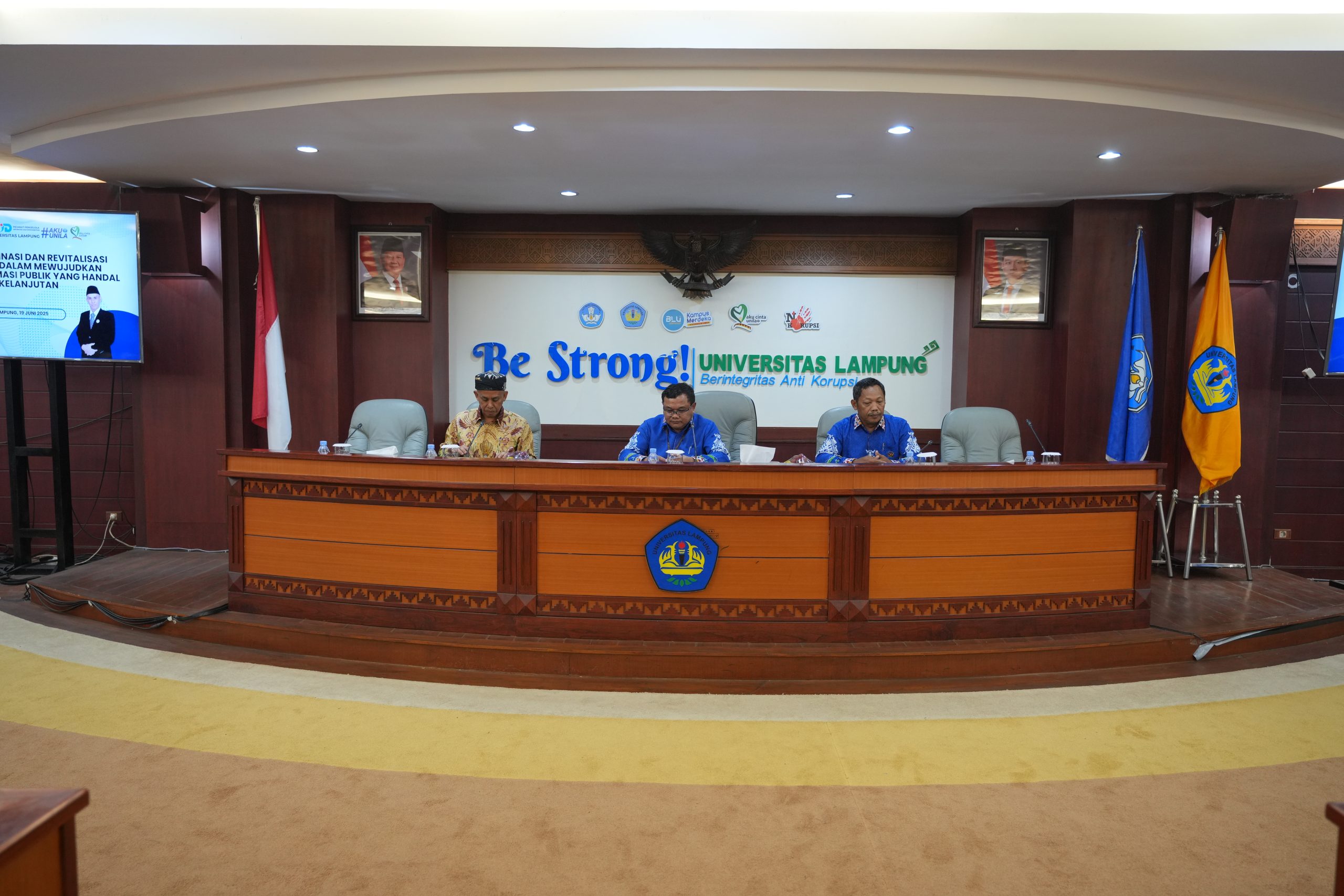 Bandar Lampung – Universitas Lampung (Unila) kembali meneguhkan komitmennya sebagai badan publik yang transparan melalui Workshop Koordinasi dan Revitalisasi Peran Pejabat Pengelola Informasi dan Dokumentasi (PPID), Kamis (19/6/2025). Kegiatan yang berlangsung di Ruang Sidang Utama Lantai 2 Rektorat Unila ini dihadiri jajaran pimpinan universitas, mulai dari para dekan, direktur pascasarjana, kepala biro, hingga unit pelaksana akademik.