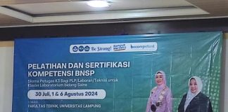 Unila Gelar Pelatihan dan Sertifikasi K-3 BNSP untuk Laboran dan Teknisi
